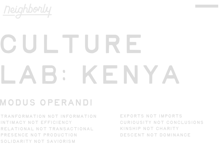 Culture Lab: Kenya is a guided immersion where instead of serving people in Kenya—you go to be formed by them, learning through proximity, shared life, and mutual exchange.